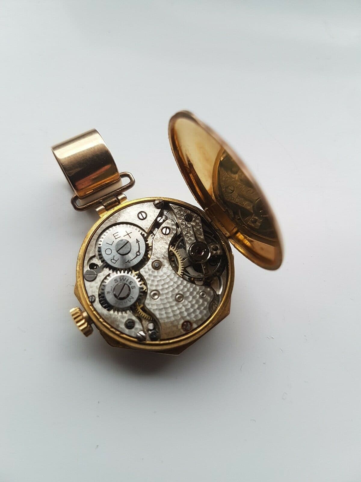 Here we have up for auction what we are led to believe a bespoke genuine Vintage Art Deco 9 carat gold Rolex watch pendant. The watch is an original 9 carat gold Ladies Art Deco Rolex watch which comes in an unique octagonal shape. The watch comes with a cream dial and black numbers and hands. The 9 carat case measures 25 mm (27.5 mm inc. crown). For its age it is in excellent condition. We have accquired it by a regular customer of ours who has recently had the watch service at a cost of £300 so it is keeping perfect time and they told us that it was their family that had the large 9 carat gold round bale fixed onto the watch which allows it to become a pendant that will fit most chains which makes it ideal for men and women. So if you love Rolexes this is a perfect collectors piece, so happy bidding.