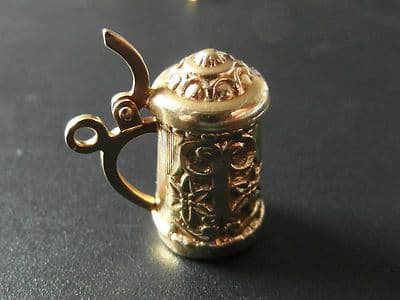 WELCOME TO KINNER'S JEWELLERS OF BOLTON ESTABLIHED OVER 25 YEARS THIS IS A BEAUTIFUL 9 CARAT GOLD LARGE SWISS TANKARD PENDANT / CHARM. THE PENDANT COMES WITH FINE DETAILS ALL THE WAY AROUND AND A HINGE LID WHICH YOU CAN LIFT UP TO SEE INSIDE. IT MEASURES 20MM HIGH AND 15MM WIDE. ALTOGETHER THE PENDANT WEIGHS A NICE 2.68 GRAMS AND IS FULLY HALLMARKED 375.I HAVE TAKEN THE PICTURES USING A ZOOM LENS TO TRY AND CAPTURE THE TRUE BEAUTY OF THIS ITEM.