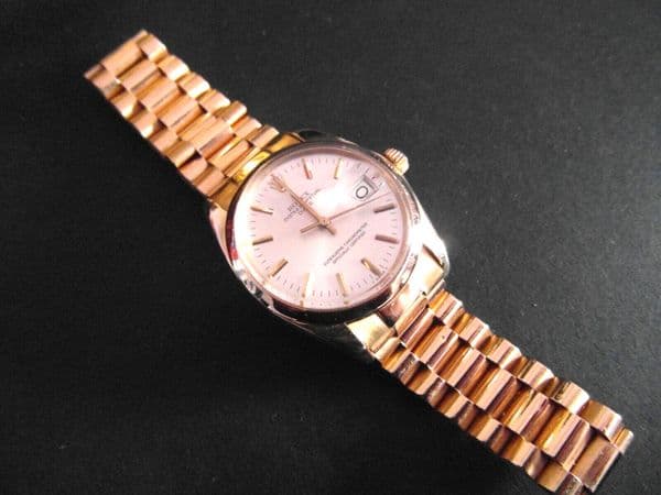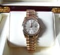 The watch is a 34mm case size (36mm including winder). It has a champagne silver dial with 14 carat gold batons and fingers. The bracelet is an after market solid 18ct gold president bracelet that I personally had fitted 2 years ago. And waighs a huge 106.5 grams It is still in excellent condition and could easily pass as a a few years old especially with the smooth bezel. I have personally been wearing this watch for the past 2 years and have never had any issues. It is keeping perfect time and is a real stunner to wear. The watch will come presented in a beautiful rosewood presentation box with a watch register certificate.